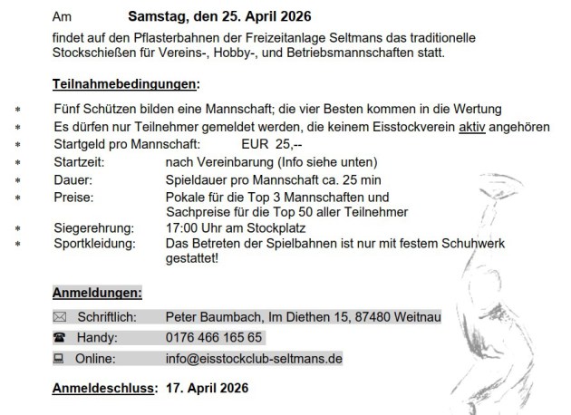 Stockschiess-Gaudicup 2026 - Termin 25.04.2026